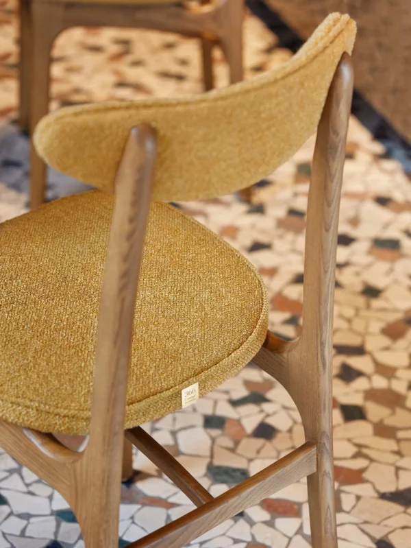 Charakteringas suapvalintas atlošas yra išskirtinis dizaino elementas, dėl kurio 200-190 kėdė tapo neginčijama septintojo dešimtmečio ikona. Jos dizainas sujungia Art Deco estetiką ir daniško stiliaus funkcionalumą. Dekoratyvi, lengva ir argonomiška kėdės forma papildys Jūsų namų, biuro ar restorano interjerą. 200-190 kėdė pagaminta iš išskirtinės kokybės uosio medienos, dekoruota žalvario detalėmis.