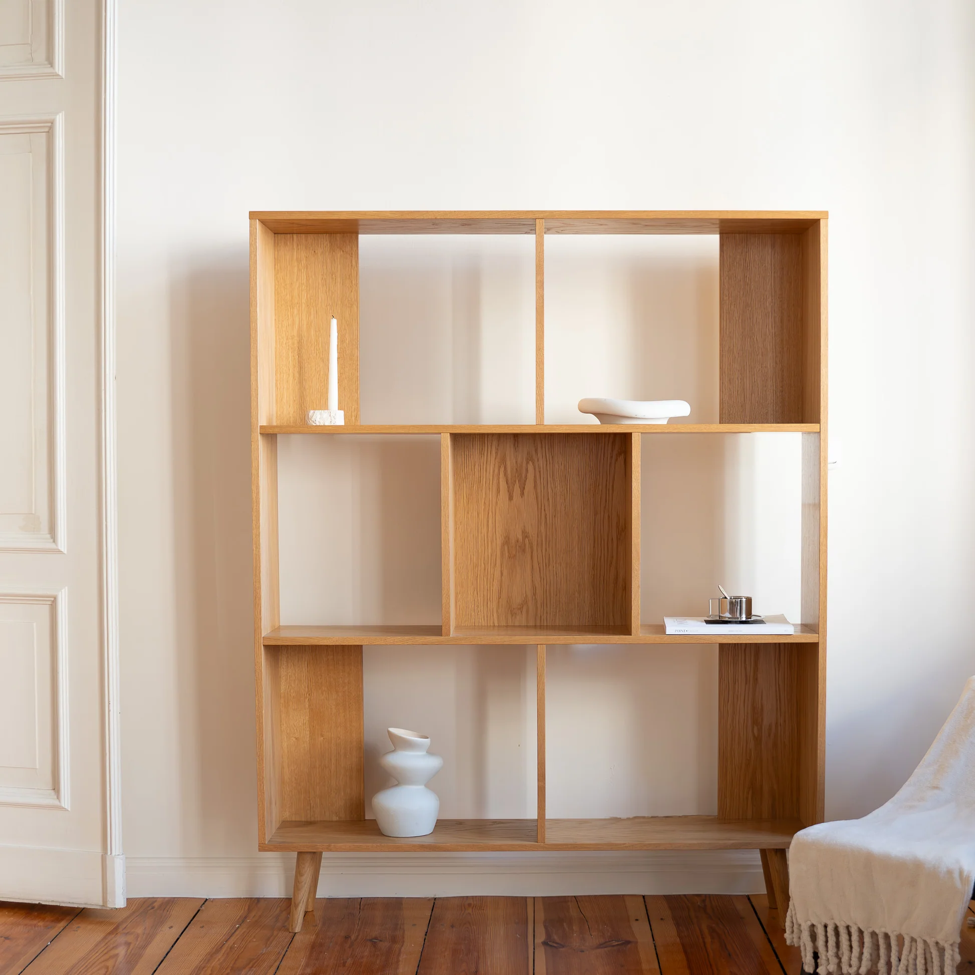 Estetiška ir funkcionali lentyna jūsų knygoms, meno kūriniams, šeimos nuotraukoms. 6 ir 7 dešimtmečių įkvėptas stilius – įstrižos kojelės, klasikinė retro spalvos, natūrali mediena. Ratp modelis talpus ir stabilus, lentynos gali atlaikyti ir didesnį svorį. Lentyna padalinta į dvi dalis, po keturias lentynas kiekvienoje pusėje. Šis baldas gali puikiai tarnauti tiek namų biure, tiek miegamajame, svetainėje ar prieškambaryje.